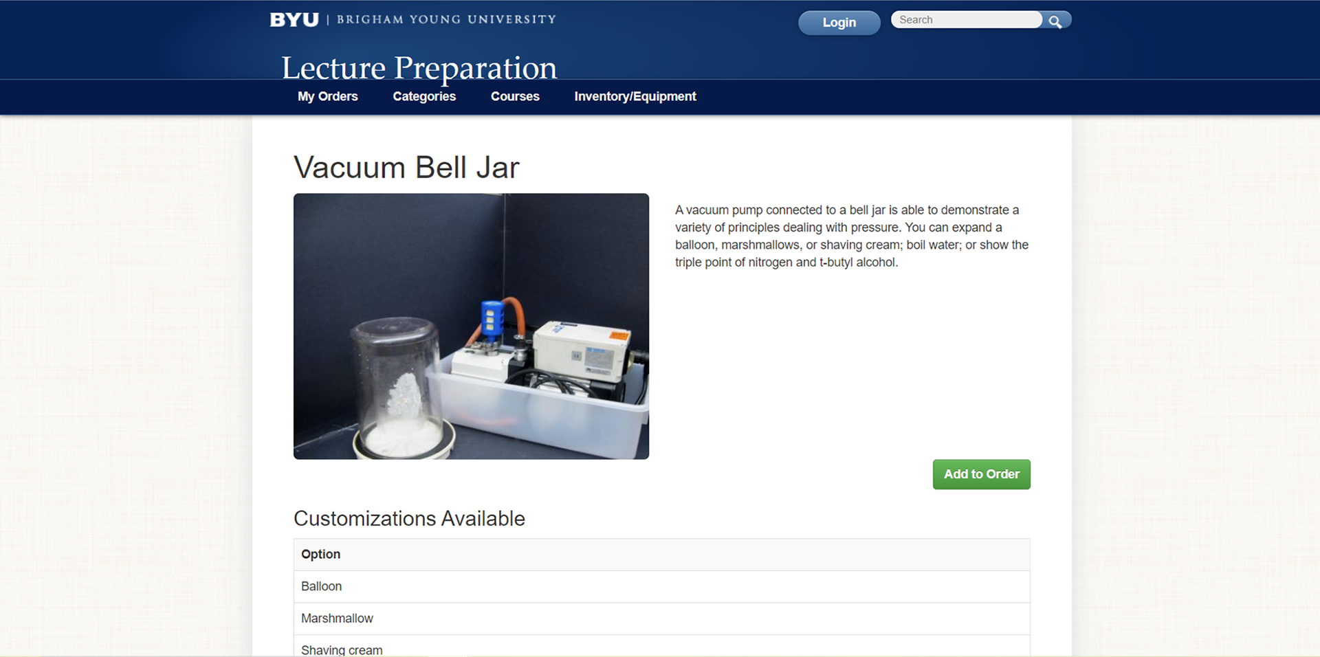 The previous Lecture Preparation site followed few e-commerce site conventions; in particular, the product page lacked the ability to input a quantity and select customizations before ordering a demonstration.