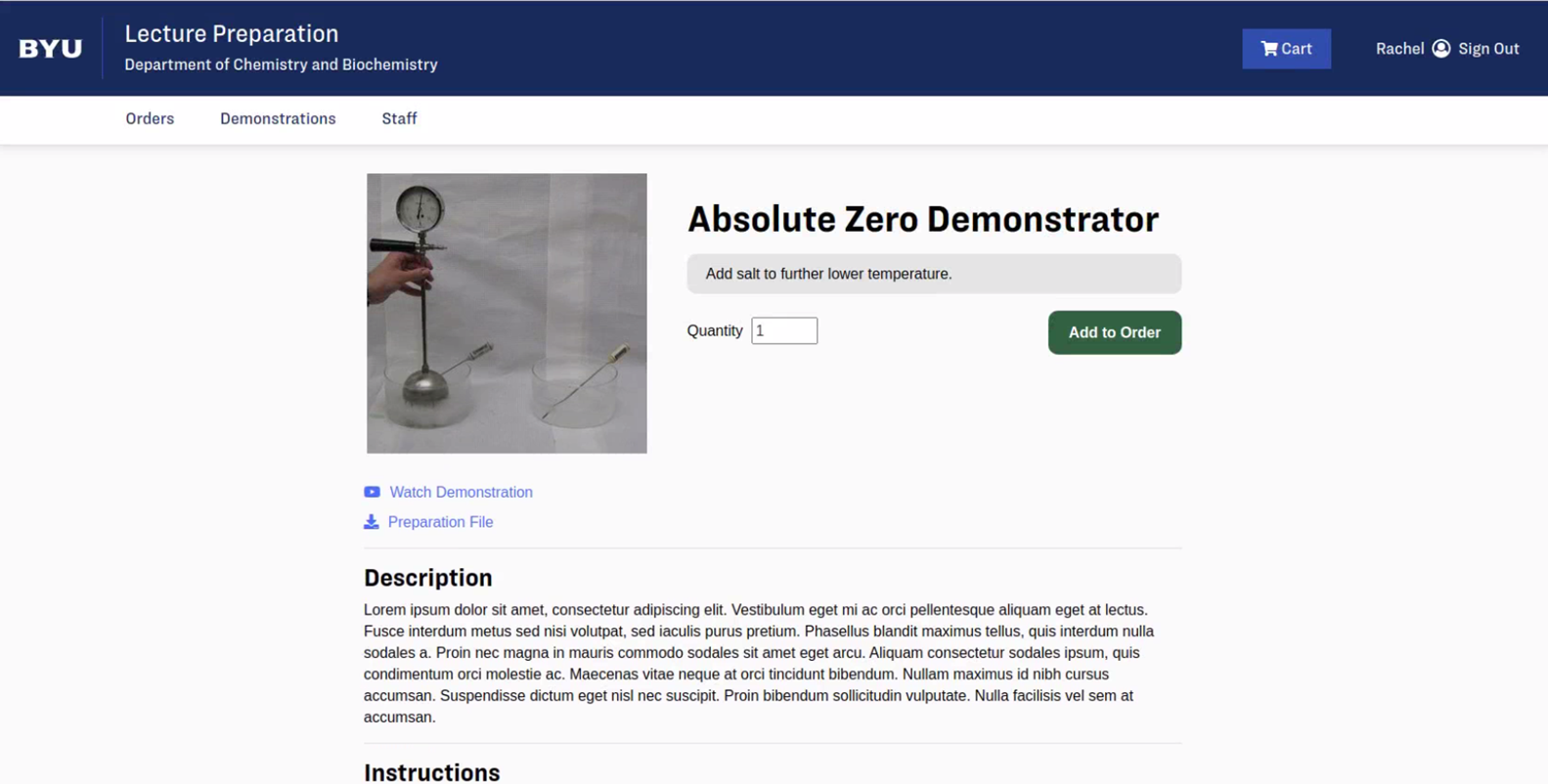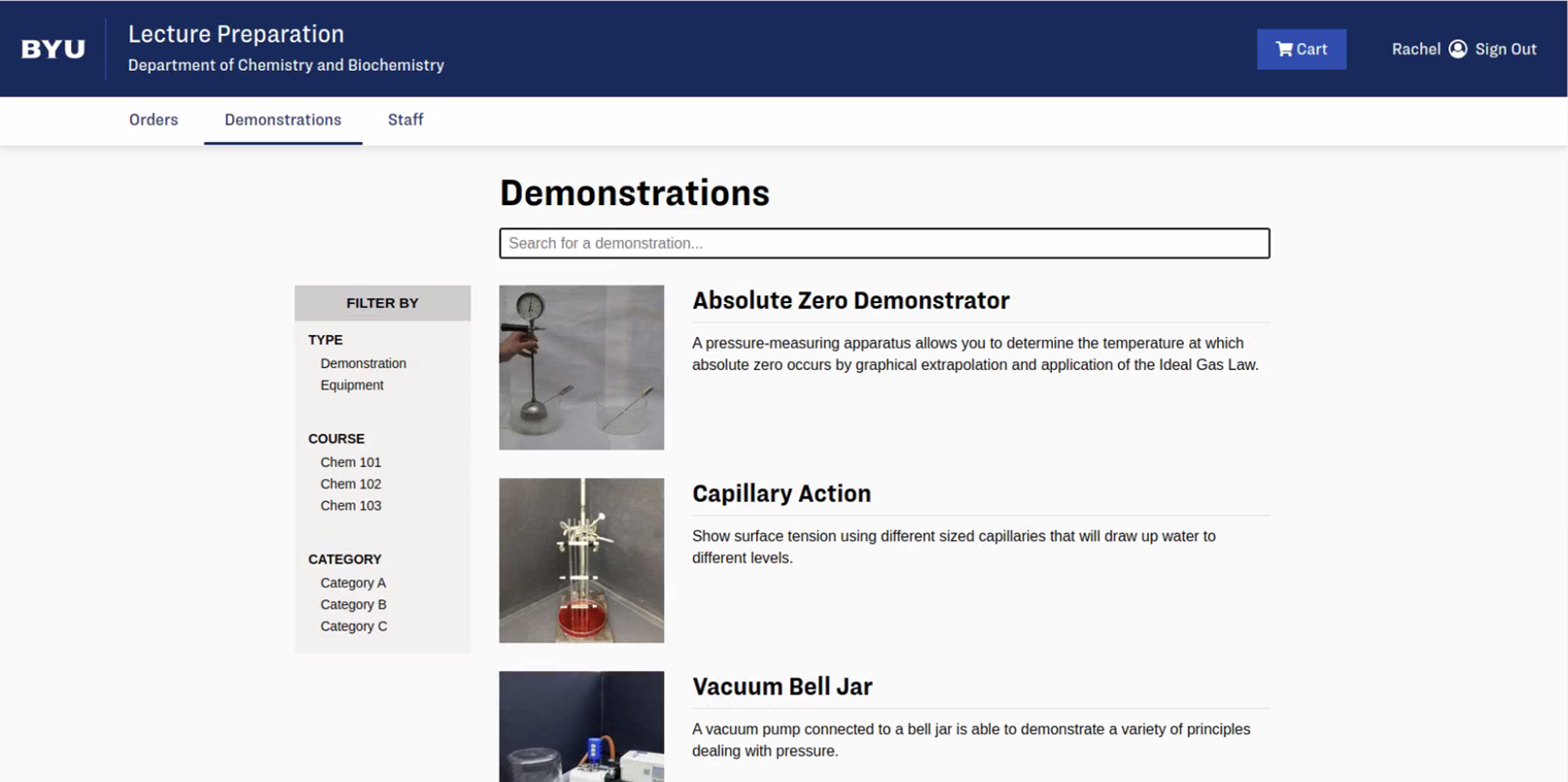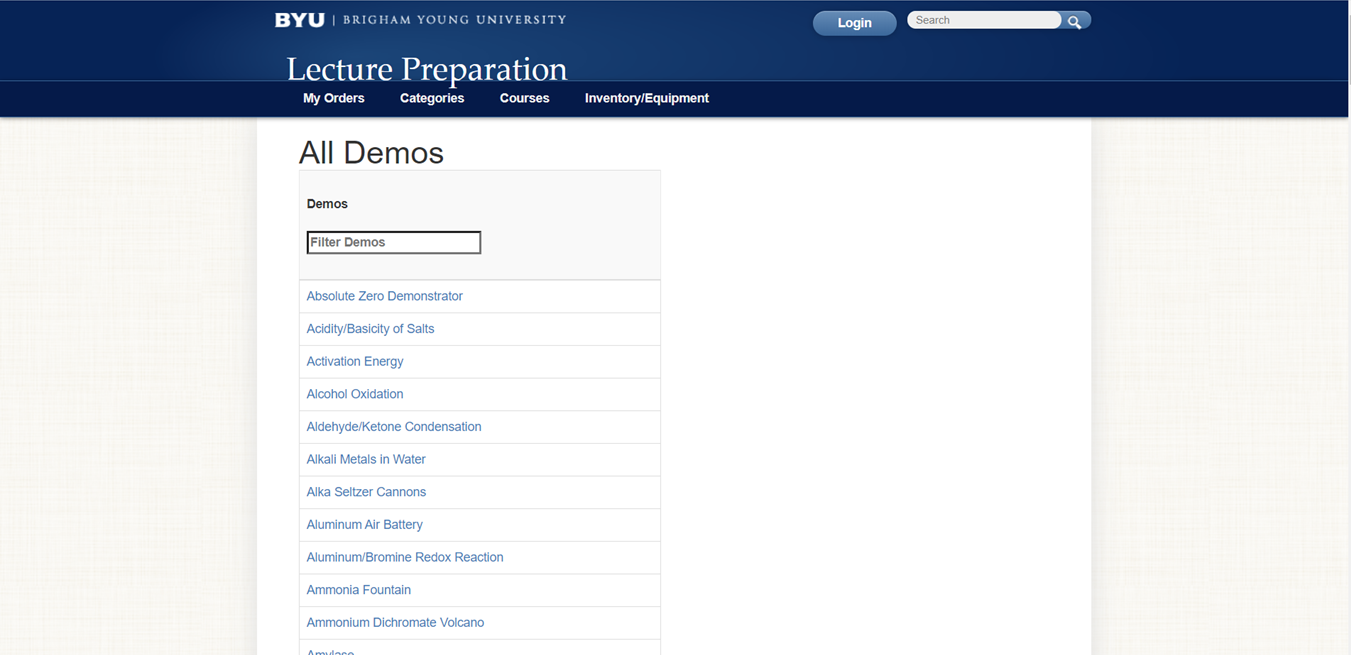 The previous site's page to browse demonstrations made it difficult for new professors to know what each demonstration was without reading through them all.
