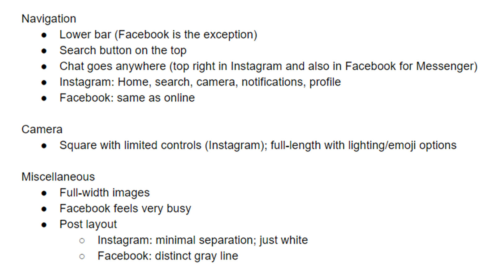 Because I don't use many forms of social media on my phone, the first thing I did was to examine multiple major social media platforms, including Facebook, Instagram, and Marco Polo, and compile a list of conventions.